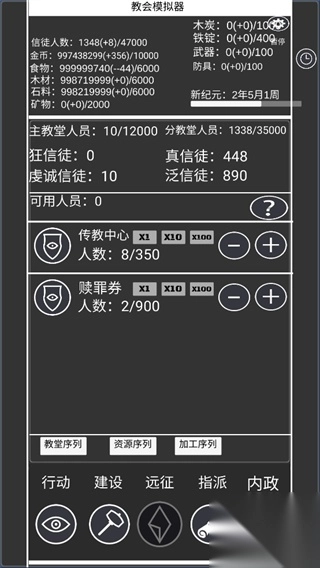 1、游戏的核心在于信徒,无论是金钱的收入还是任务的指派,都是要用到信徒,所以进游戏的第1件事是先通过宣传,把信徒人数拉满。