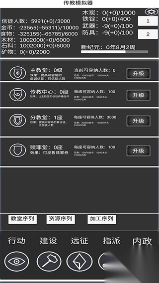 7、在资源达到1万或2万储量的时候,可以开始升级教堂系列,优先把主教堂,分教堂和赎罪券升级。