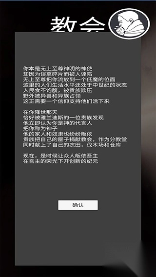 《教会模拟器》是一款主打文字的模拟经营游戏。其背景设定在1920年代,那是一个神灵隐匿于世间,且有着诸多秘史的世界。也许你渴望追求知识、力量、美貌,亦或是为了复仇;又或许你仅仅是想探寻隐藏在世界表象之下的种种色彩。在游戏里,玩家将在异世界传播信仰,吸引信徒,壮大教会,推动城市发展,进而逐步获取对城市的掌控权。